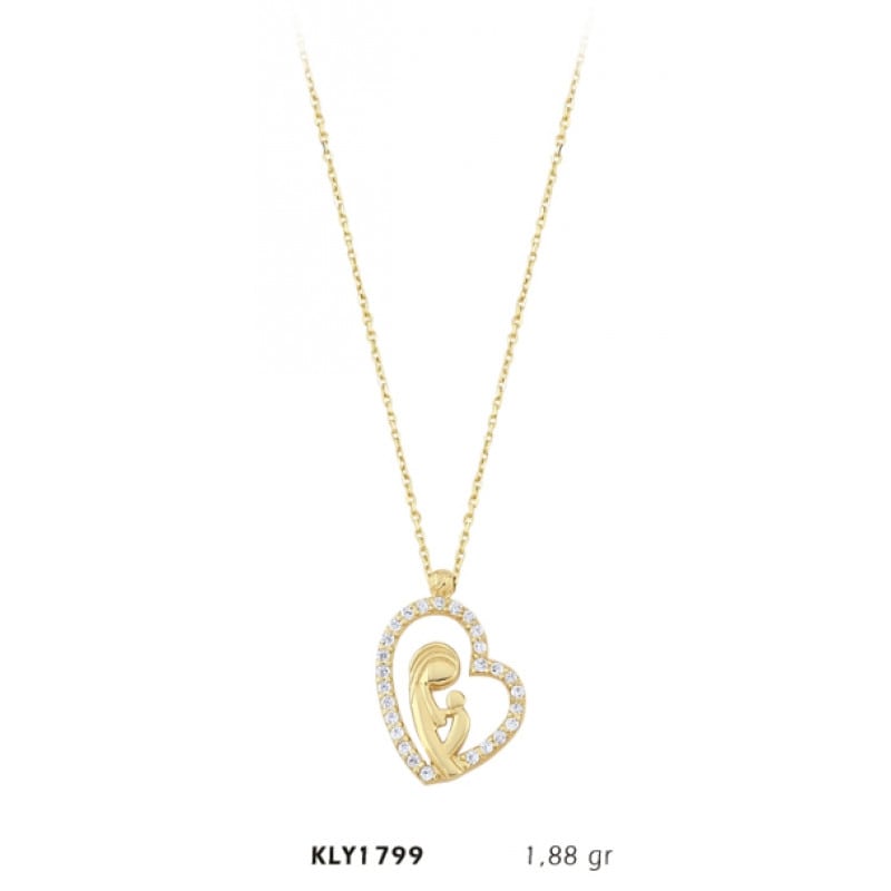 14 Ayar Altın Anne ve Bebeği Kalp Kolye KLY1799
