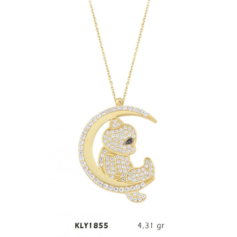 14 Ayar Altın Aya Oturan İnsan Motifli Kolye KLY1855