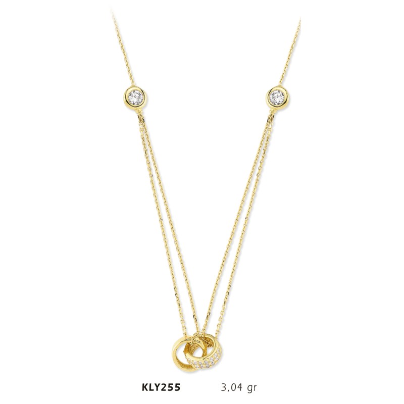 14 Ayar Altın İkili Halka Kolye KLY255