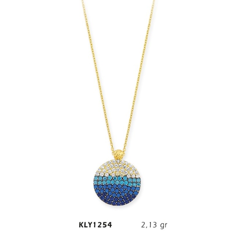 14 Ayar Altın Mavi Daire Kolye KLY1254