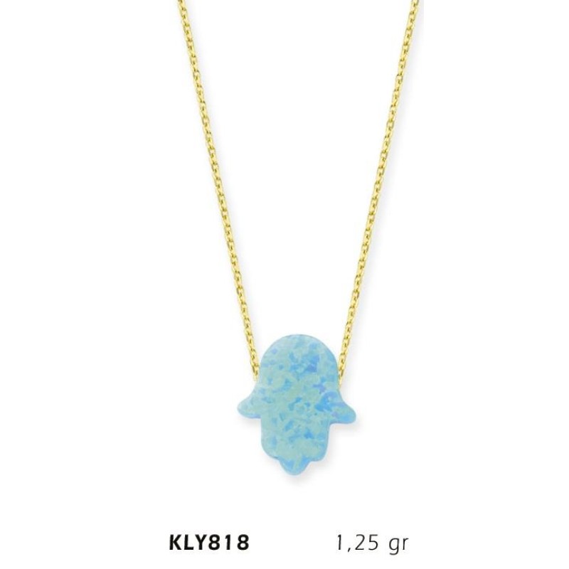 14 Ayar Altın Mavi Opal Taşlı Fatma Eli Kolye KLY818