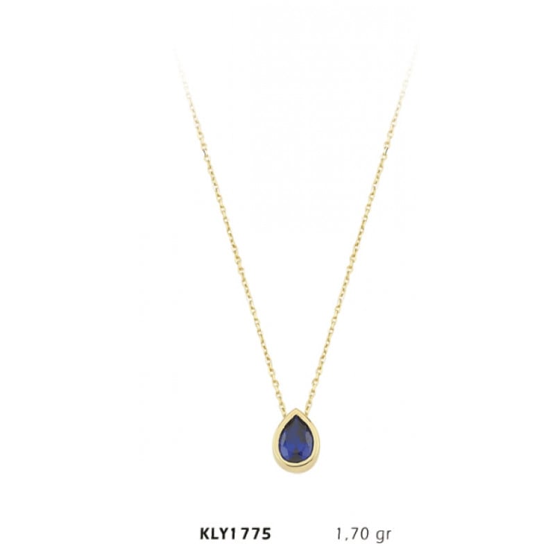 14 Ayar Altın Mavi Taşlı Kolye KLY1775