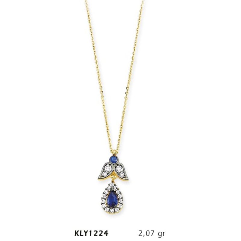14 Ayar Altın Mavi Tektaş Damla Kolye KLY1224