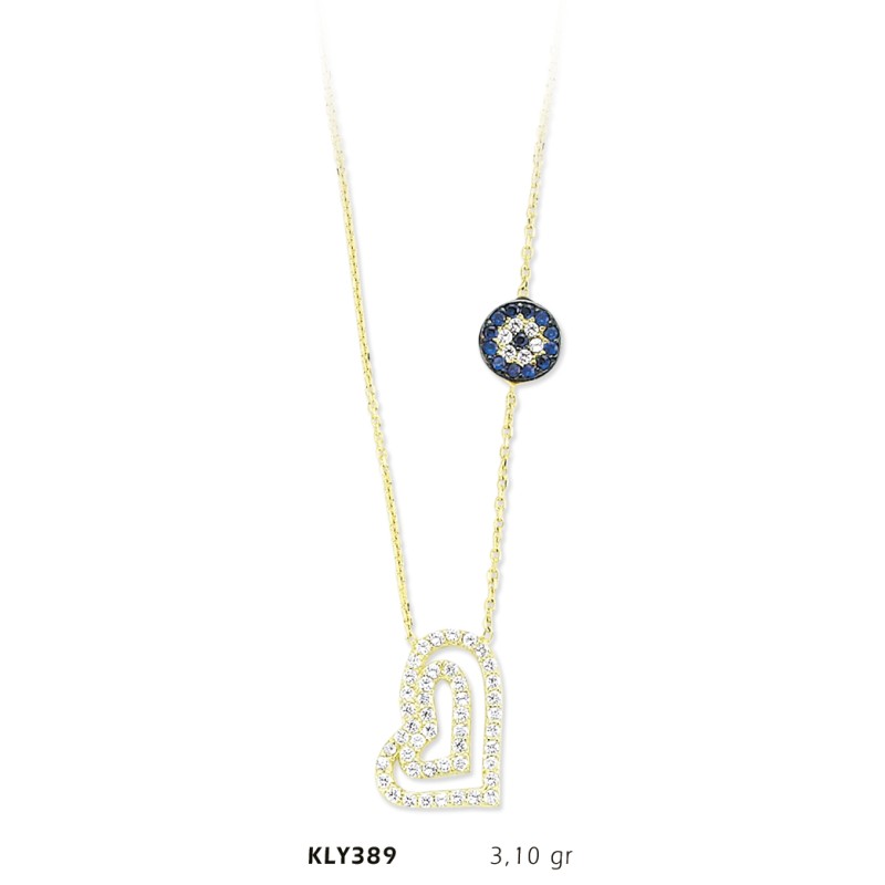 14 Ayar Altın Nazar Boncuğu Kalp Kolye KLY389