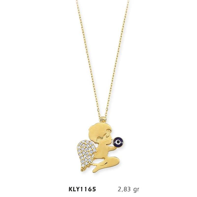 14 Ayar Altın Nazar Boncuğu Melek Kolye KLY1165