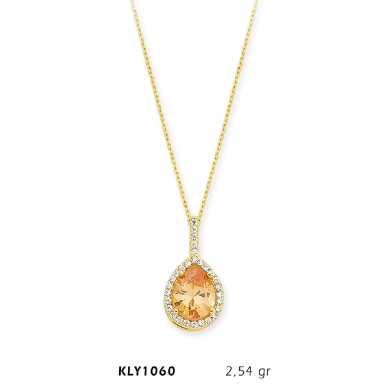14 Ayar Altın Oranj Taşlı Anturaj Kolye KLY1060