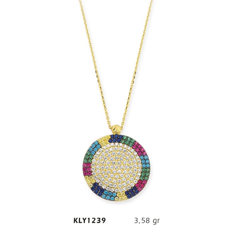 14 Ayar Altın Rengarenk Çerçeveli Daire Kolye KLY1239