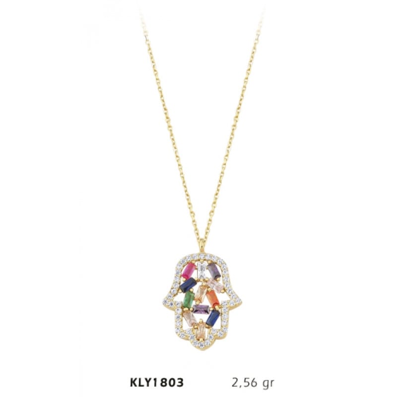 14 Ayar Altın Renkli Taşlı Fatma Eli Kolye KLY1803