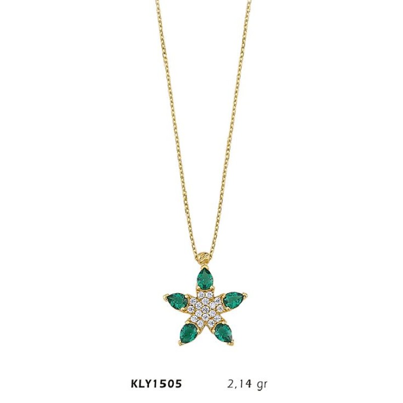 14 Ayar Altın Yeşil Yıldız Kolye KLY1505