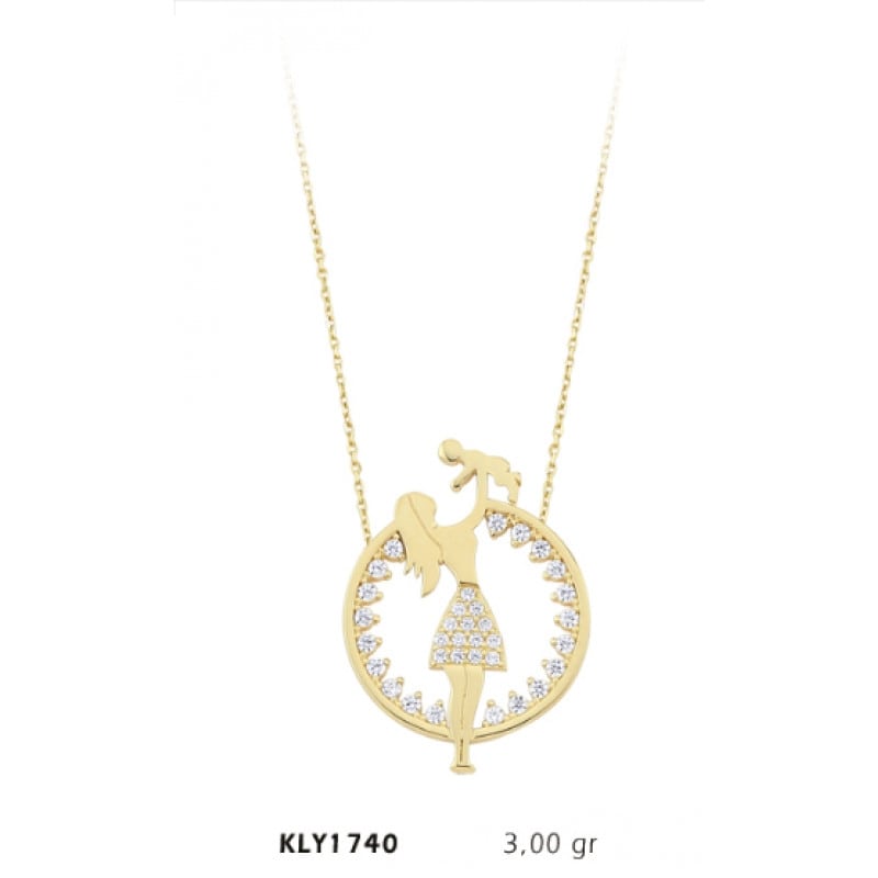 14 Ayar Anne Bebek Taşlı Kolye KLY1740