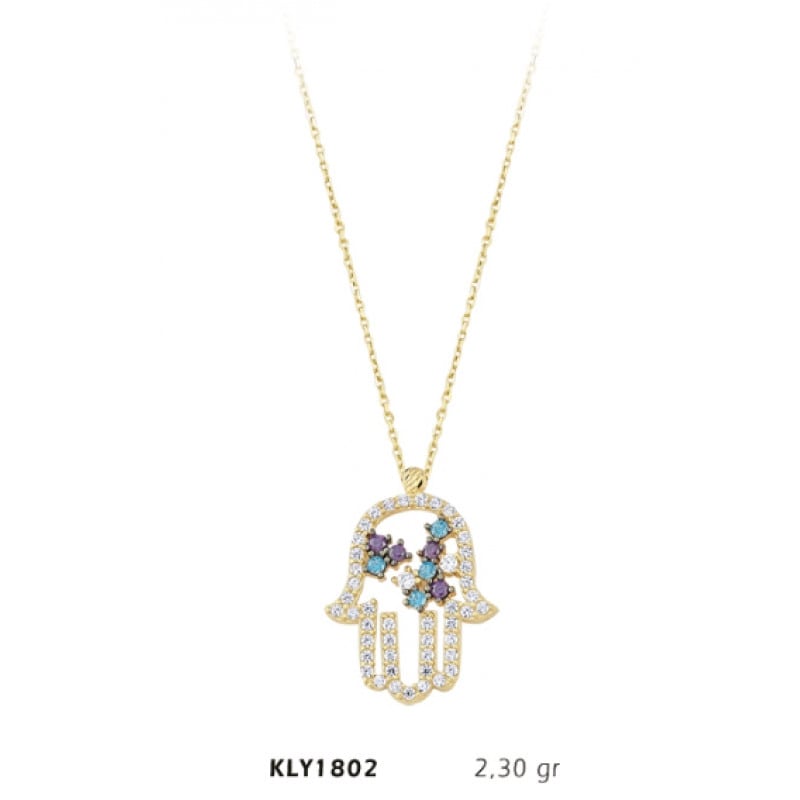14 Ayar Renkli Taşlı Fatma Eli Kolye KLY1802
