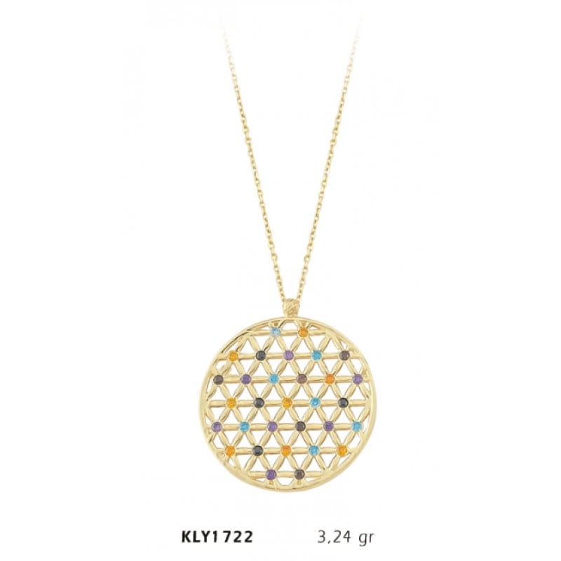 14 Ayar Renkli Taşlı Halka Kolye KLY1722