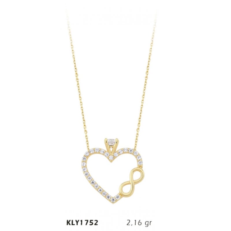 14 Ayar Sonsuzluk Motifli Tektaş Kalp Kolye KLY1752