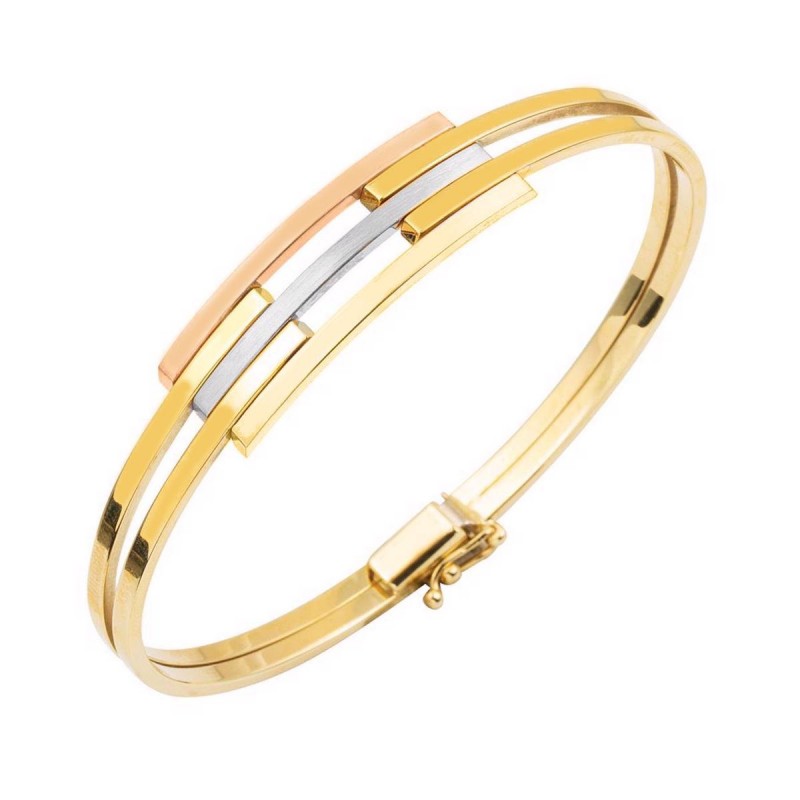 Üç Renk 14 Ayar Altın Kaburga Kelepçe Bileklik KLP20