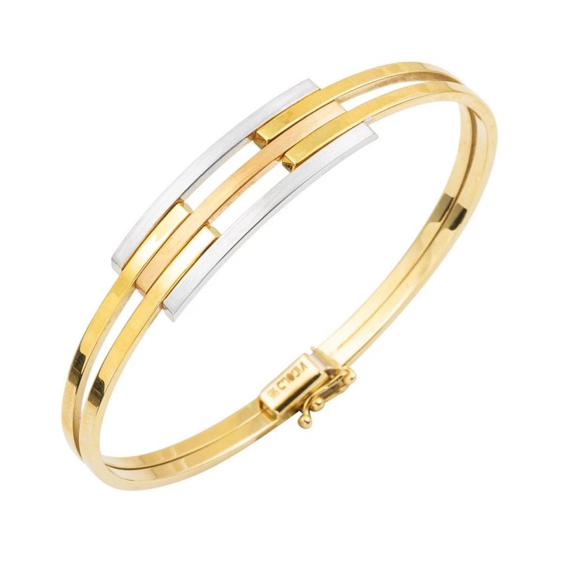 Üç Sıra Rodajlı 14 Ayar Altın Kaburga Kelepçe Bileklik KLP25