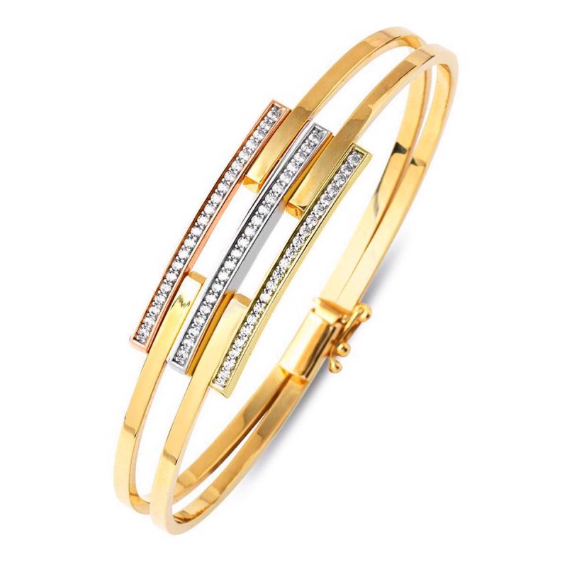 Üç Sıra Taşı 14 Ayar Altın Kaburga Kelepçe Bileklik KLP31