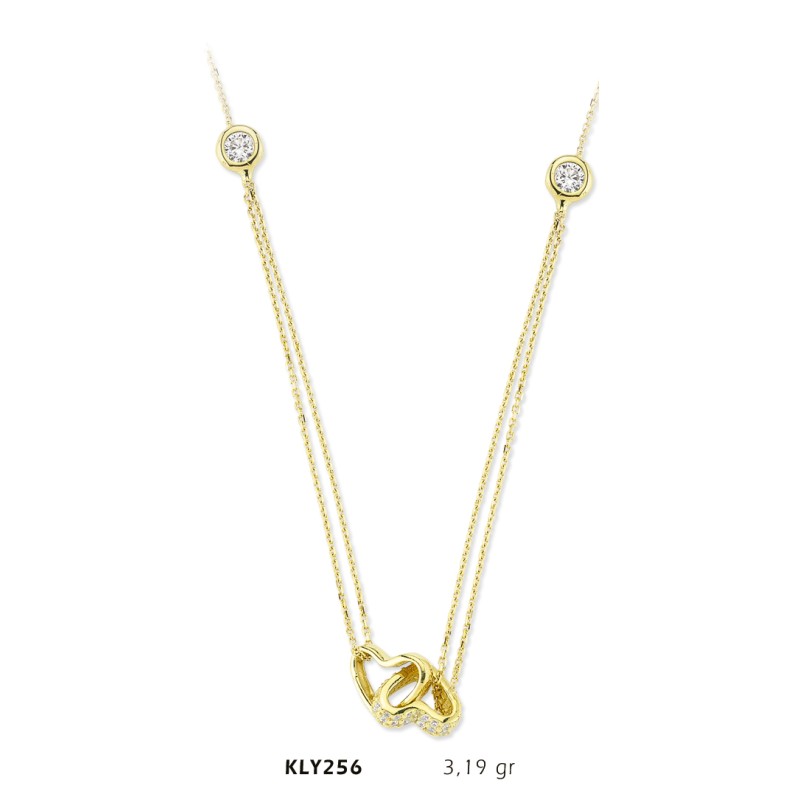 14 Ayar Altın İkili Kalp Kolye KLY256