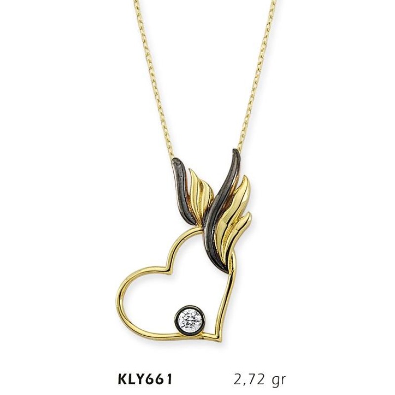 14 Ayar Altın Kalpli Melek Kanadı Kolye KLY661