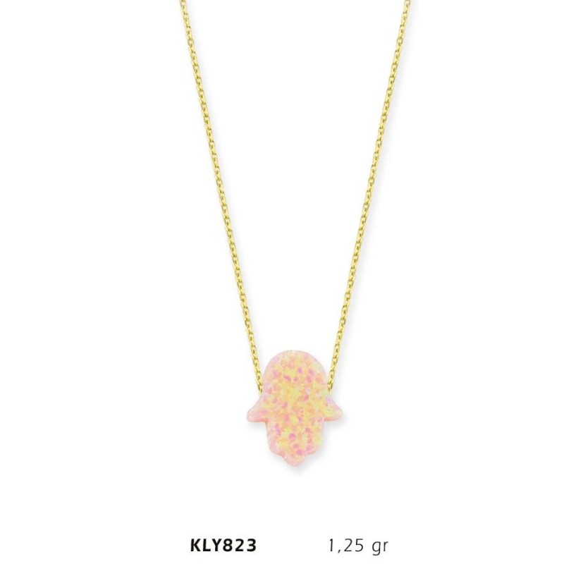 14 Ayar Altın Pembe Opal Taşlı Fatma Eli Kolye KLY823