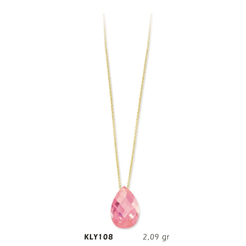 14 Ayar Altın Pembe Taş Kolye KLY108