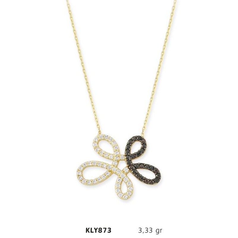 14 Ayar Altın Siyah-Beyaz Taşlı Kolye KLY873