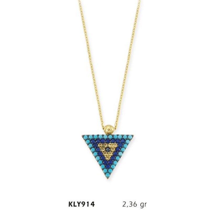 14 Ayar Altın Üçgen Nazar Boncuğu Kolye KLY914