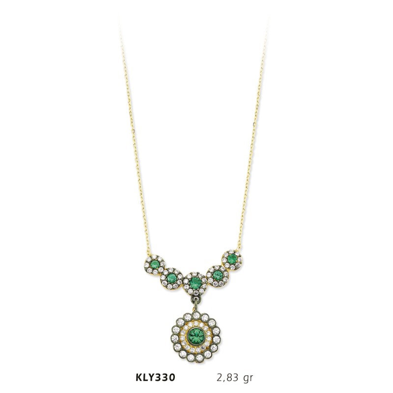 14 Ayar Altın Yeşil Taşlı Kolye KLY330