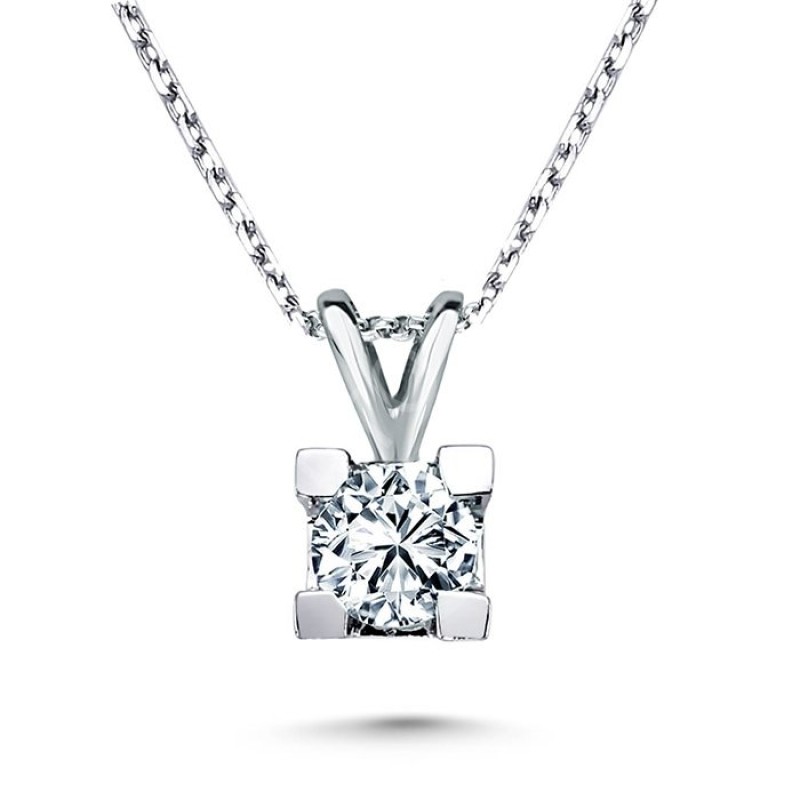 0.10 Karat F Renk Takoz Tırnak Tektaş Pırlanta Kolye TK1