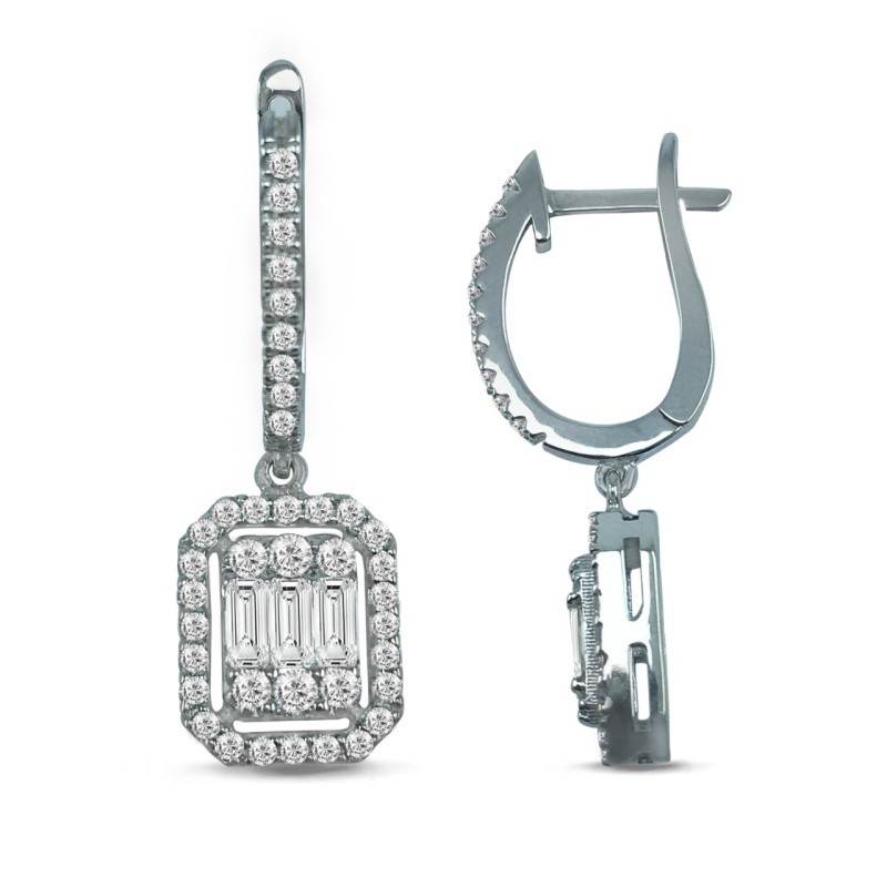 1.06 Karat F Renk Pırlanta Baget Küpe KPB13