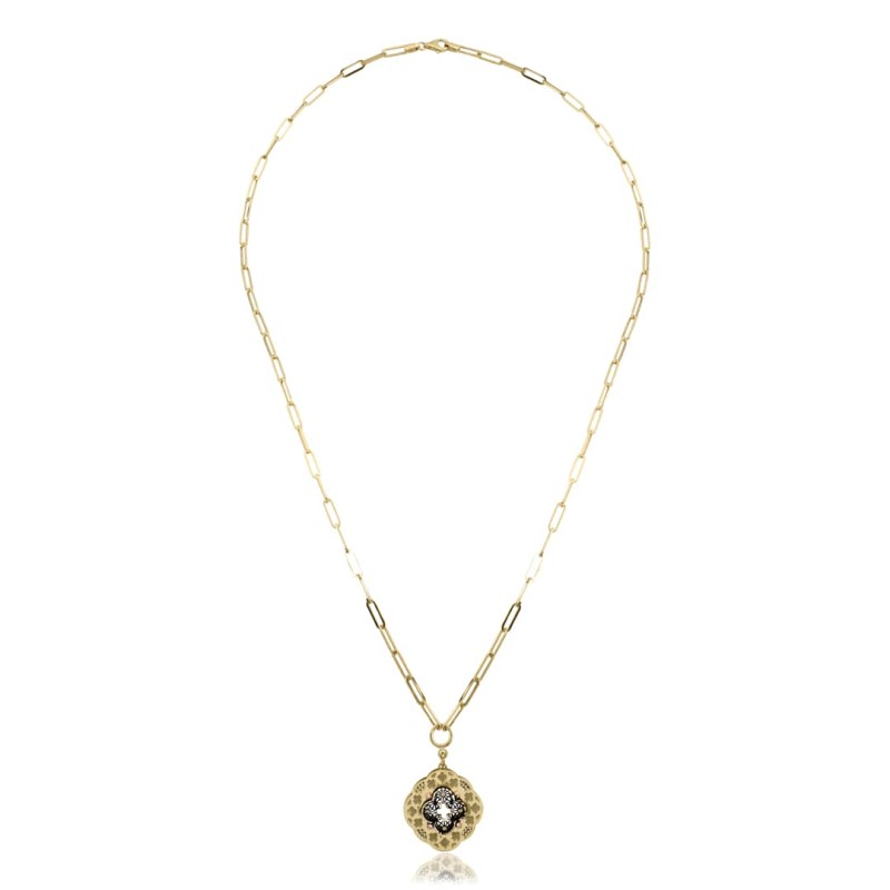 Siyah Yonca Uçlu Zincir Kolye ZKU152