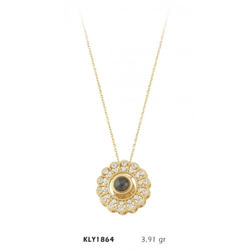 14 Ayar Altın 100 Dilde Seni Seviyorum Taşlı Halka Kolye KLY1864