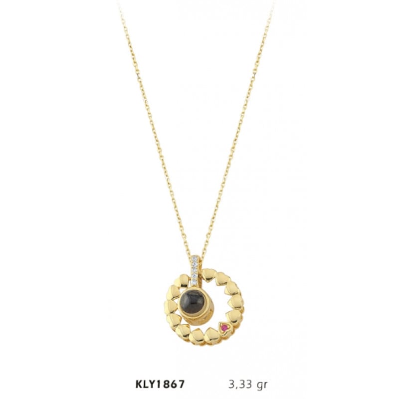 14 Ayar Altın 100 Dilde Seni Seviyorum Taşlı Kalp İşlemeli Halka Kolye KLY1867