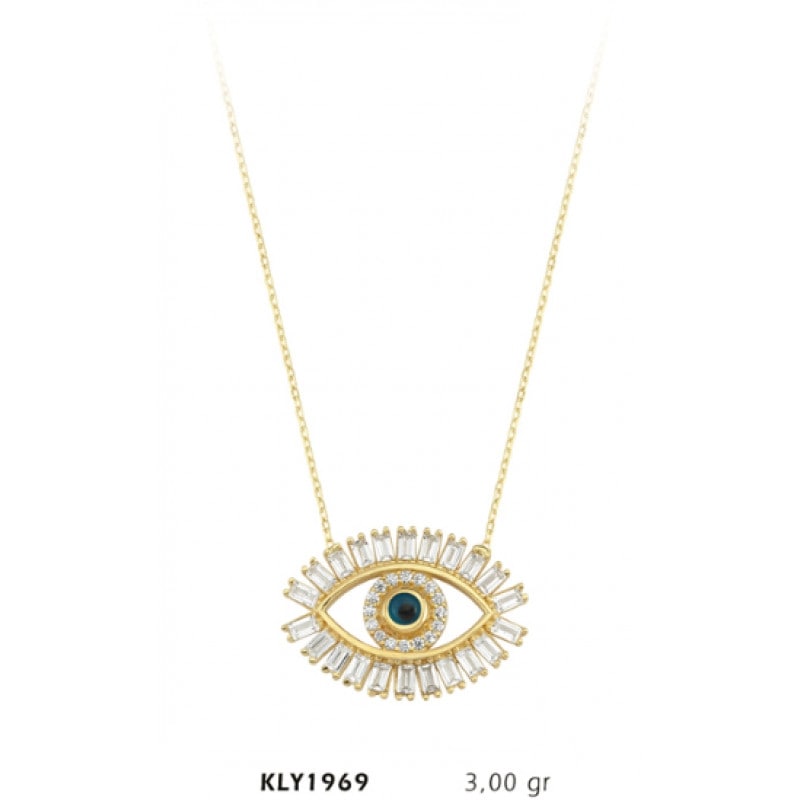 14 Ayar Altın Baget Göz Kolye KLY1969