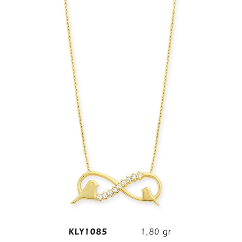 14 Ayar Altın Çift Kuş Sonsuzluk Kolye KLY1085