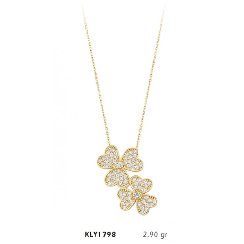 14 Ayar Altın Çift Üç Yapraklı Yonca Kolye KLY1798