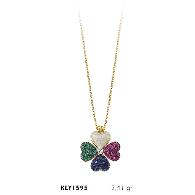 14 Ayar Altın Dört Renk Yonca Kolye KLY1595