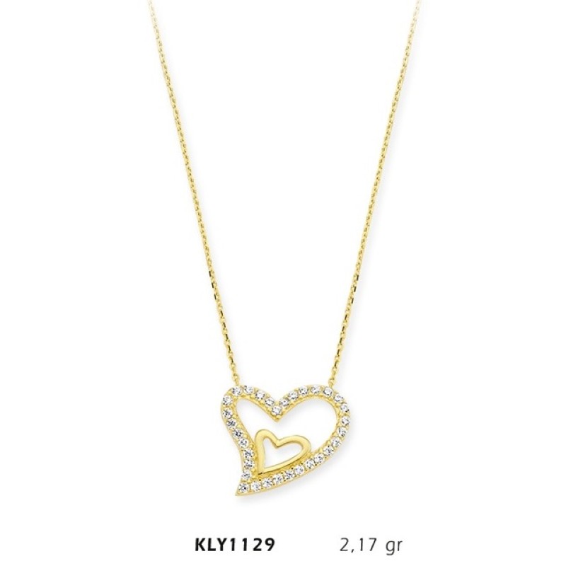 14 Ayar Altın İç İçe Kalp Kolye KLY1129