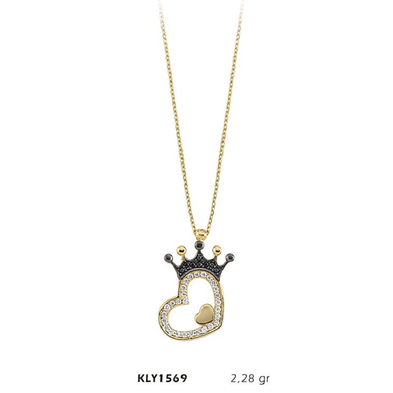 14 Ayar Altın Kalpli Kral Tacı Kolye KLY1569