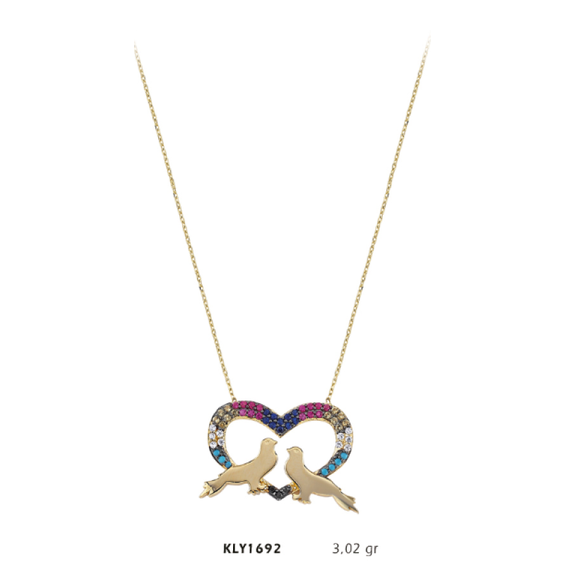 14 Ayar Altın Kalpli Kuş Kolye KLY1692
