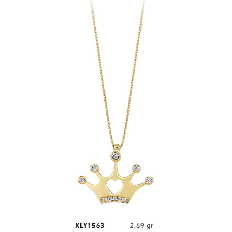 14 Ayar Altın Kalpli Taç Kolye KLY1563