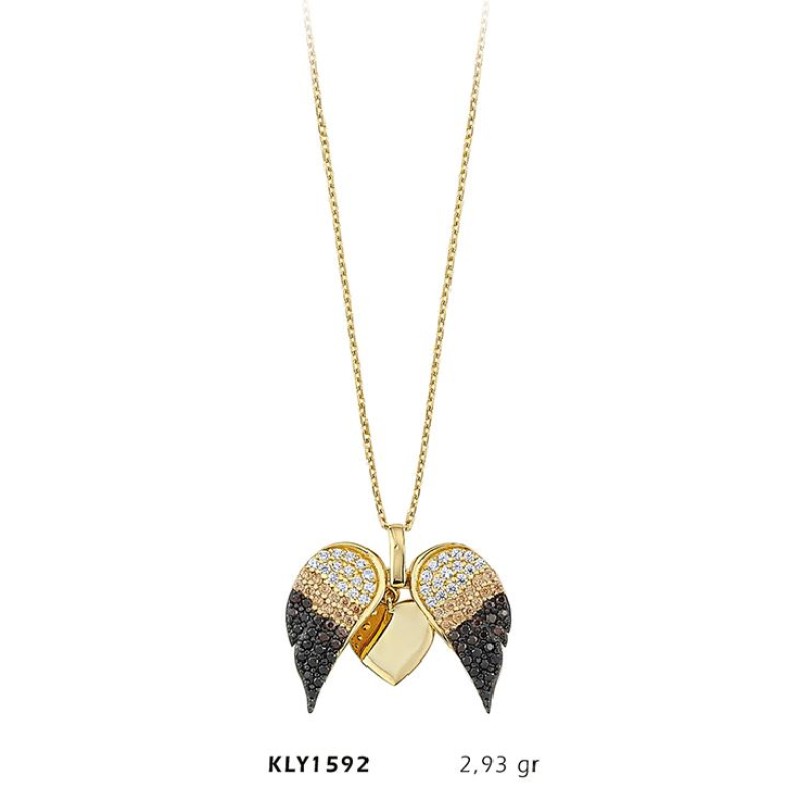 14 Ayar Altın Kanatlı Kalp Kolye KLY1592