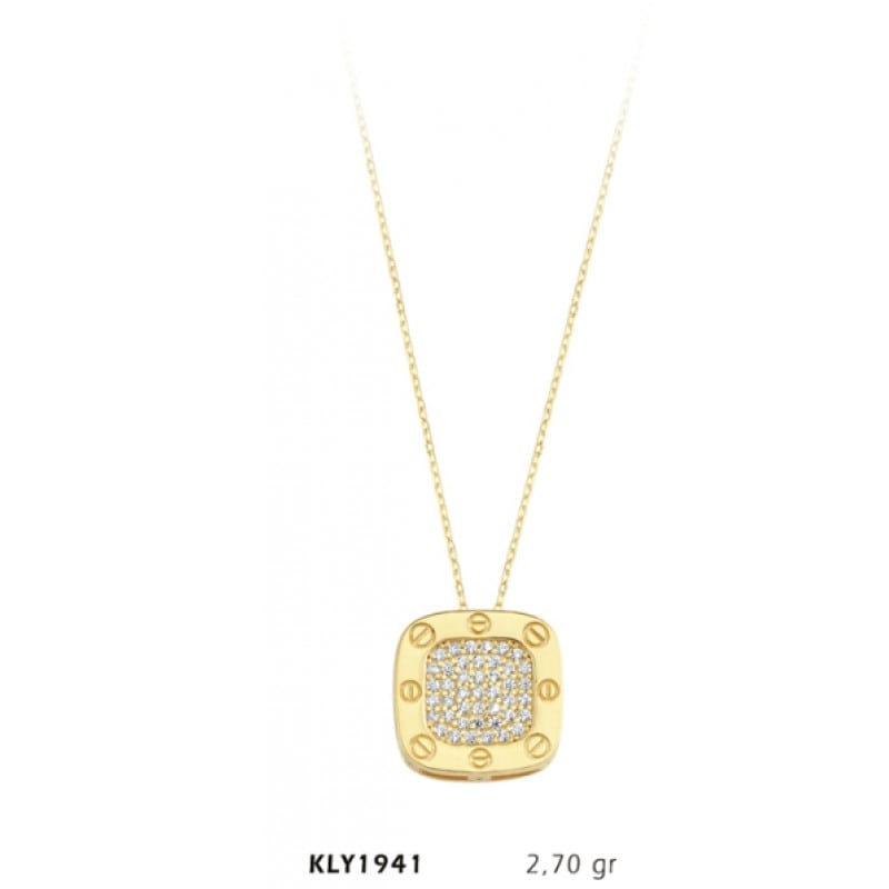 14 Ayar Altın Kare Taşlı Kolye KLY1941