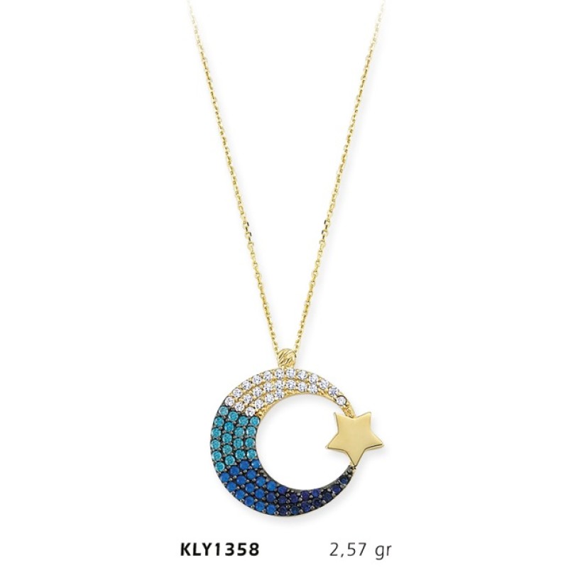14 Ayar Altın Mavi Ayyıldız Kolye KLY1358