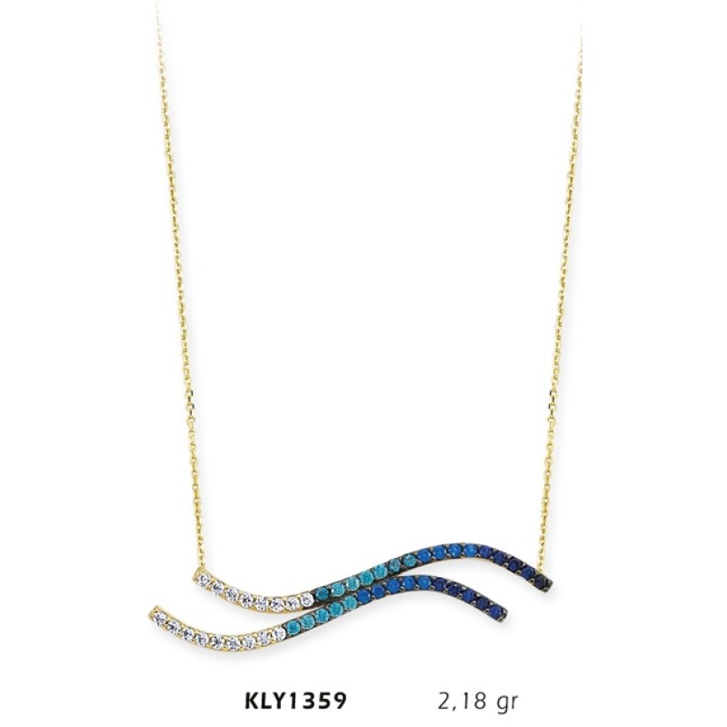 14 Ayar Altın Mavi Çift Dalga Kolye KLY1359