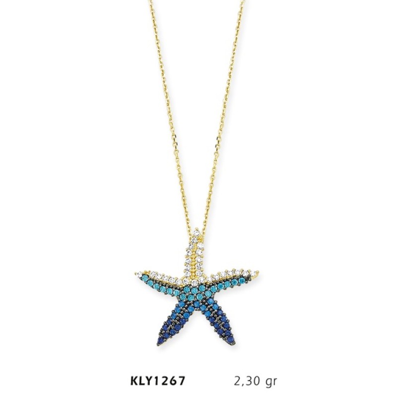 14 Ayar Altın Mavi Deniz Yıldızı Kolye KLY1267