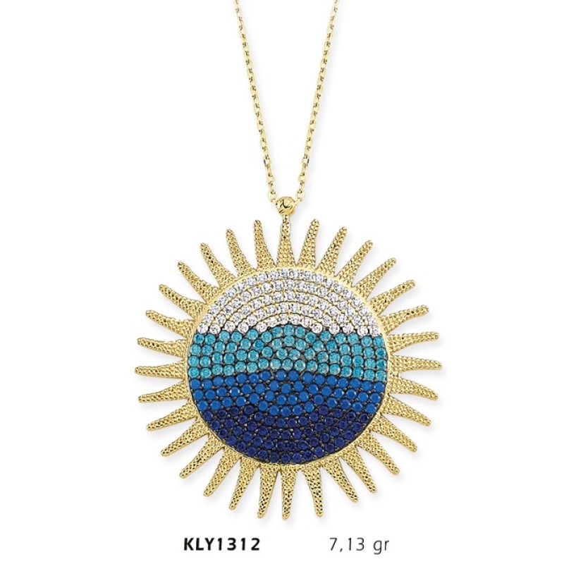 14 Ayar Altın Mavi Güneş Kolye KLY1312