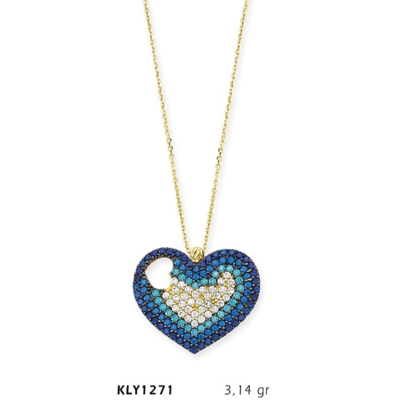 14 Ayar Altın Mavi Kalp Kolye KLY1271