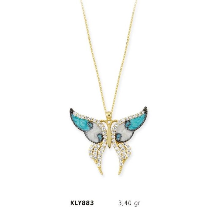 14 Ayar Altın Mavi Kelebek Kolye KLY883