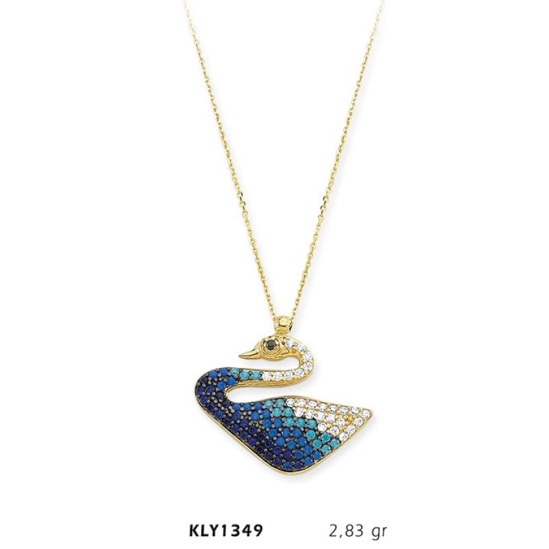 14 Ayar Altın Mavi Kuğu Kolye KLY1349