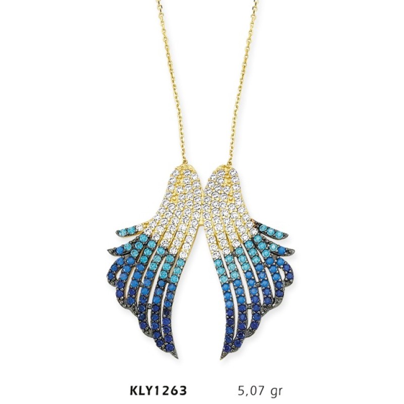 14 Ayar Altın Mavi Melek Kanadı Kolye KLY1263
